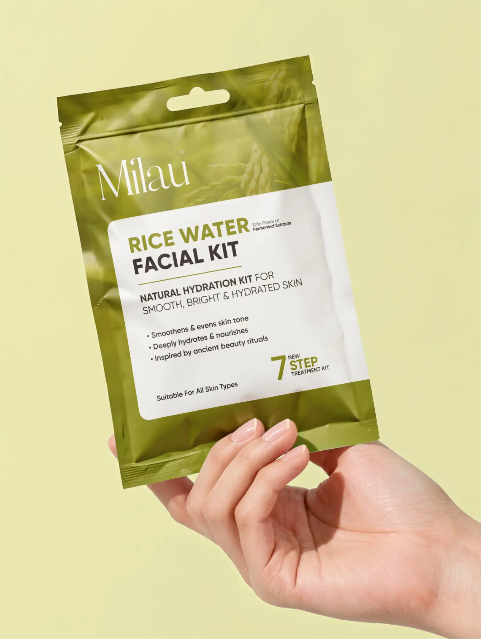 For centuries, women across Asia have relied on the remarkable properties of rice water for glowing, flawless skin. Rich in amino acids, vitamins, and antioxidants, fermented rice water is celebrated for its ability to smooth skin texture, brighten uneven tone, and strengthen the skin’s natural moisture barrier. The Milau Rice Water Facial Kit harnesses these proven benefits within a structured 7-step skincare system for maximum results.