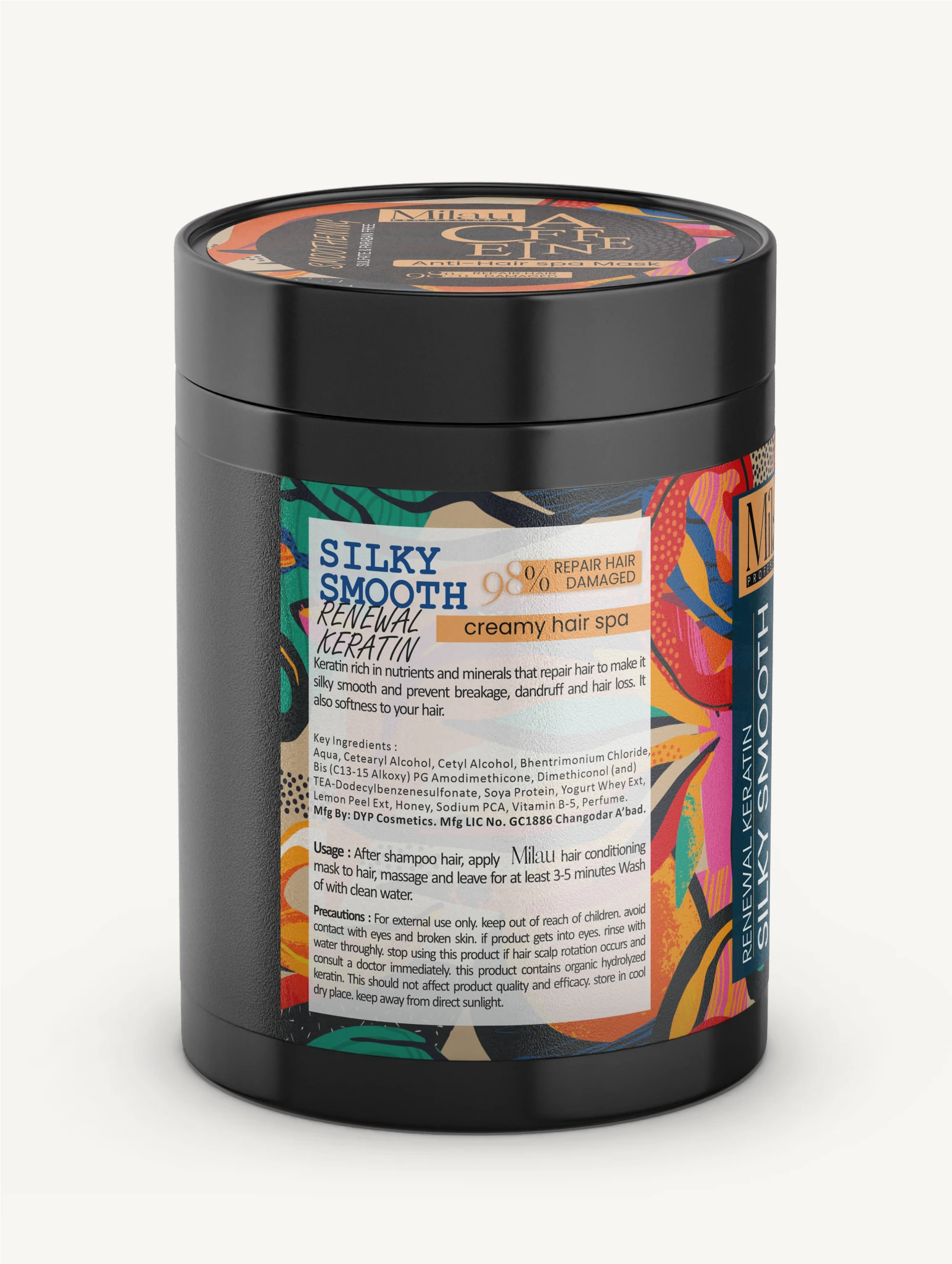 Intensive renewal keratin creamy hair spa mask that repairs 98% of hair damage, restores silky smoothness and rebuilds hair structure from within. Professional-grade treatment for visibly softer, stronger and frizz-free hair — sulfate and paraban free.