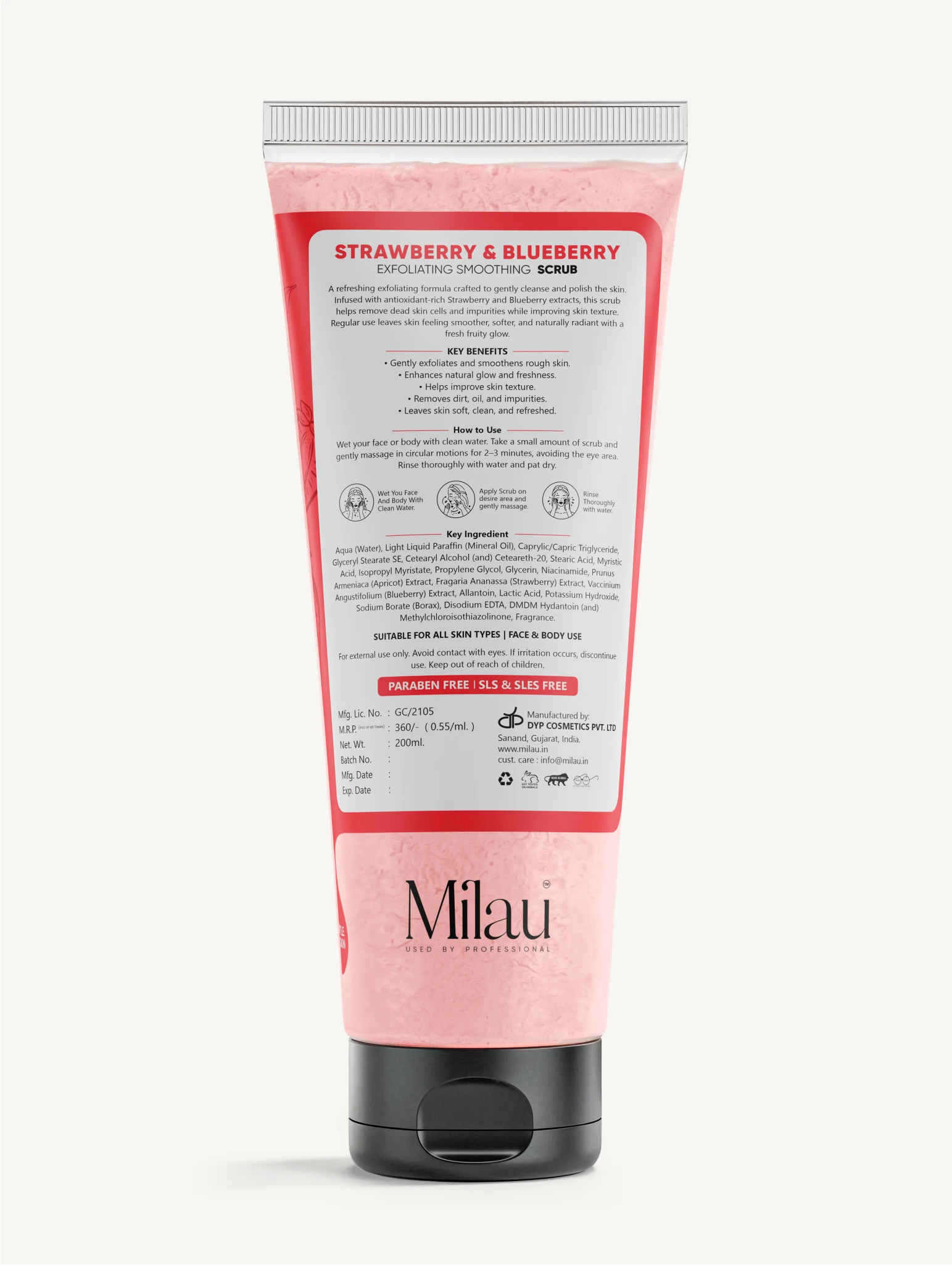 Milau Strawberry & Blueberry Scrub for face & body | 200 ml