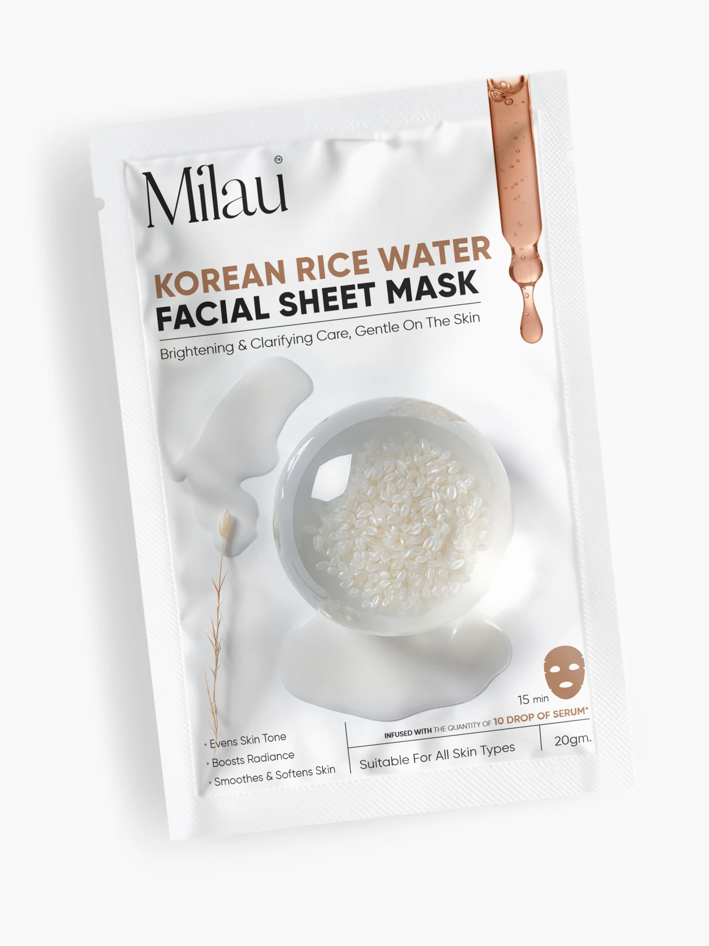 Long before serums, retinols and hyaluronic acids became skincare vocabulary, Japanese and Korean women were washing their faces with the milky water left behind from rinsing rice — and their skin showed the results. Smooth. Bright. Translucent. Timeless. The Milau Korean Rice Water Facial Sheet Mask takes this ancient Hanbang beauty ritual and amplifies it through modern fermentation biotechnology to deliver the most coveted result in K-beauty: the glass skin effect — in 15 minutes.